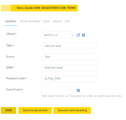 Při editaci stačí pouze rozkliknout podrobnější informace o produktu. Například kliknutím na EAN.