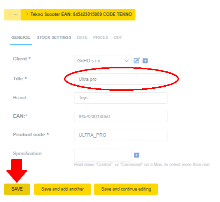 Zde například chceme u kategorie „Title“ změnit „Ultra pro best“ na „Ultra pro“.