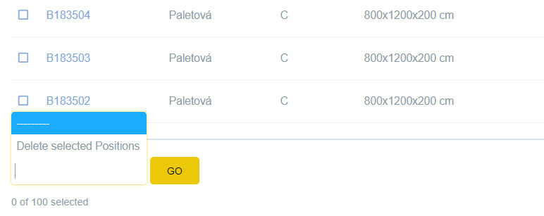 Po označení jednoho nebo více pozic máme na výběr akci „Delete selected Positions“, která zajistí vymazání označených pozic.