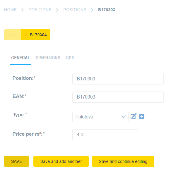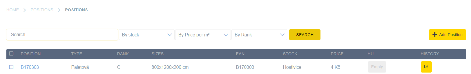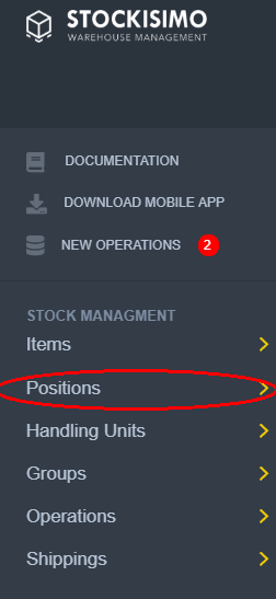 Positions neboli pozice, které nám určují umístění. Nalezneme na levé straně v menu, druhá položka pod „STOCK MANAGEMENT“.